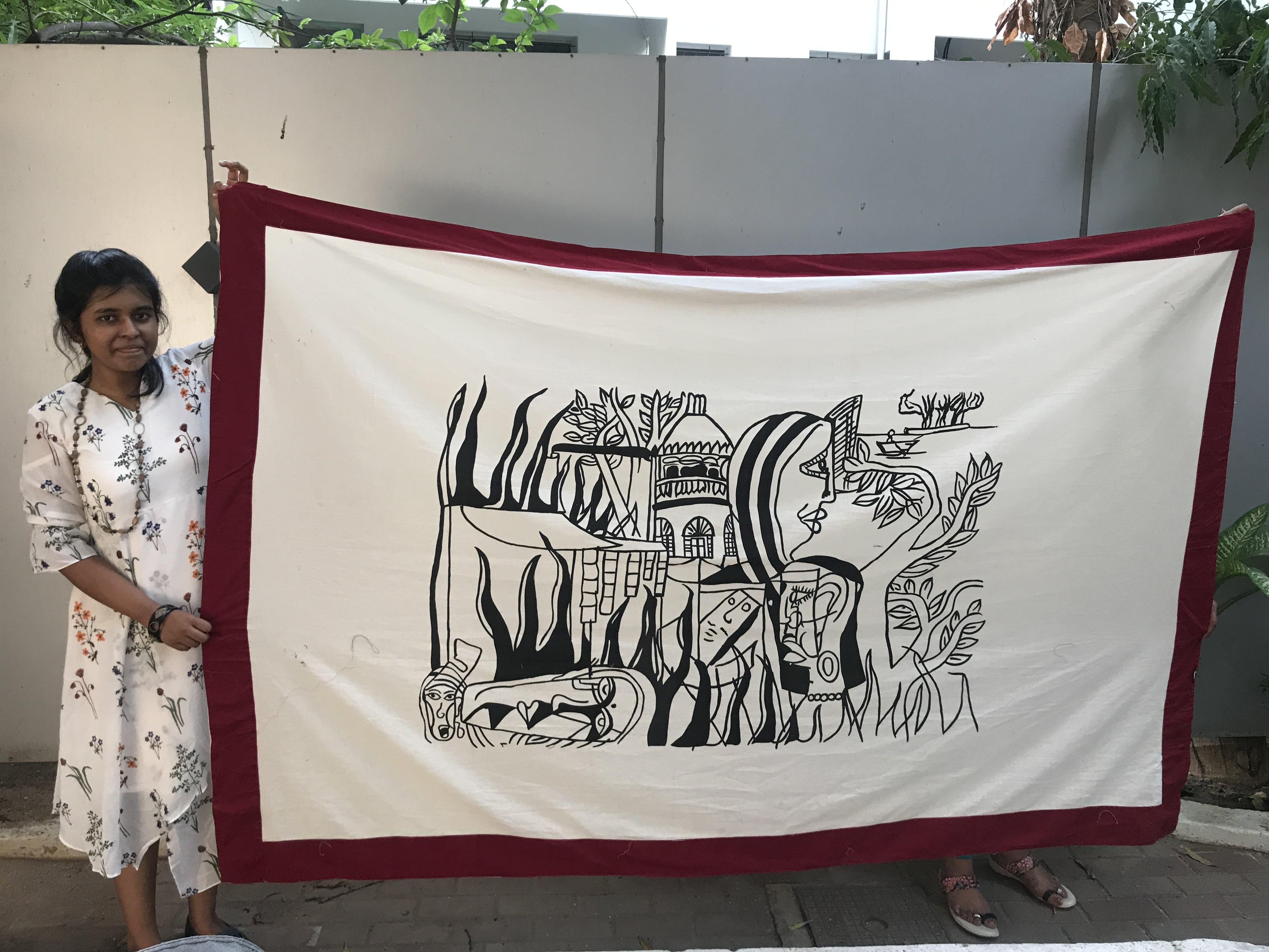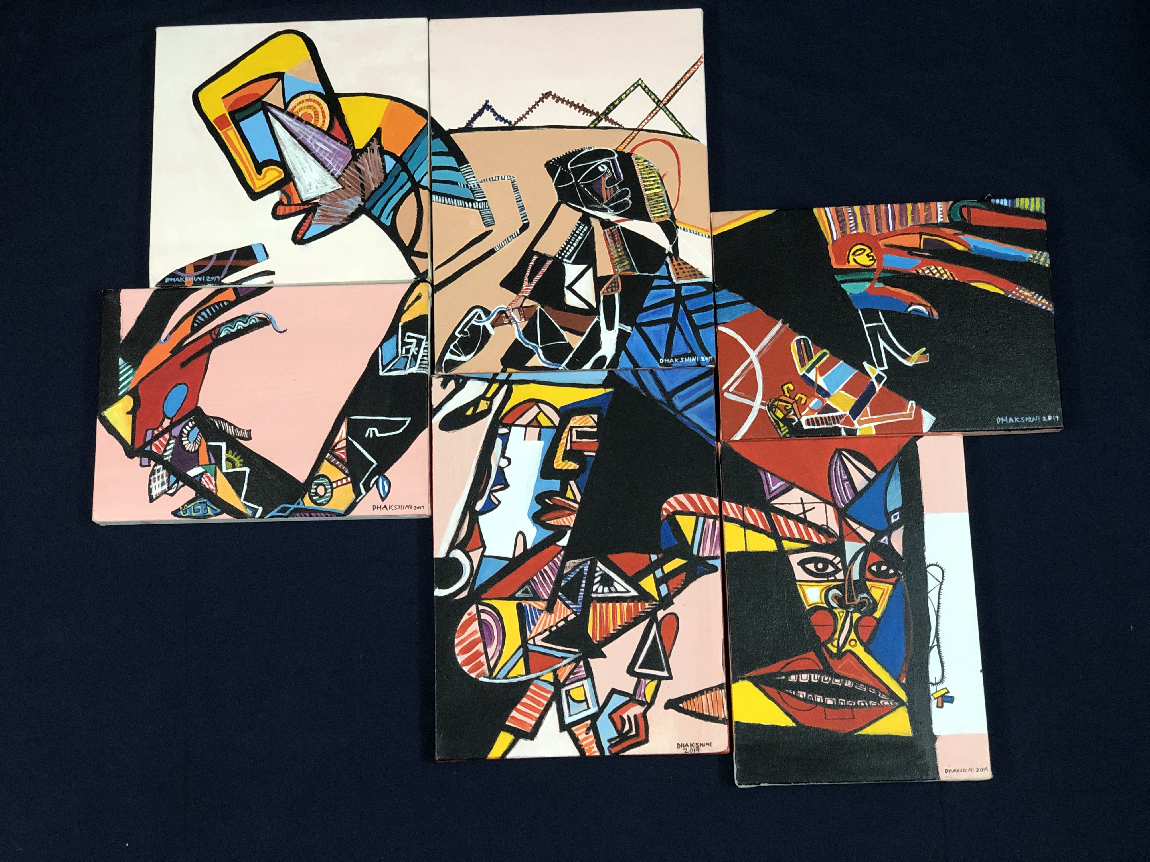 I primarily work with acrylic on canvas, but have also done works with watercolors and pen on paper, mixed media art and wall art.